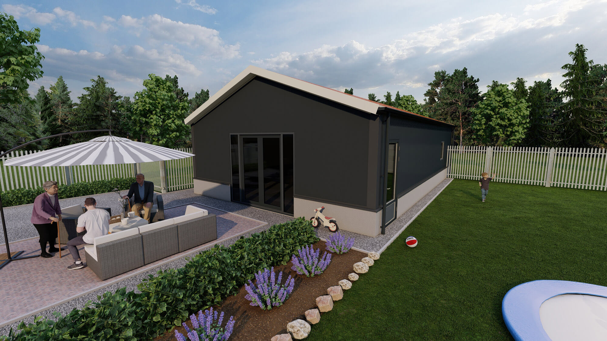 De casco mantelzorgwoning type Menard-M van 100m2 is een geweldige oplossing voor degenen die op zoek zijn naar een betaalbare en flexibele woning met veel mogelijkheden. De afmetingen van 8 bij 12,5 meter bieden voldoende ruimte voor uw comfort en welzijn. De goothoogte van 3 meter en de nokhoogte van 5 meter geven een gevoel van ruimte en licht.