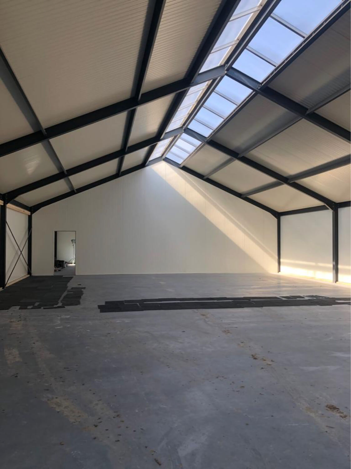 De verlaagde betonplint geeft van binnen een strakke uitstraling wat de opdrachtgever met zijn werkplaats voorzien had. Door het toepassen van een geïsoleerde tussenwand zijn er 2 aparte ruimtes gemaakt die elke vrij in te delen zijn. Wederom een Dublo om nog jaren plezier van te hebben!